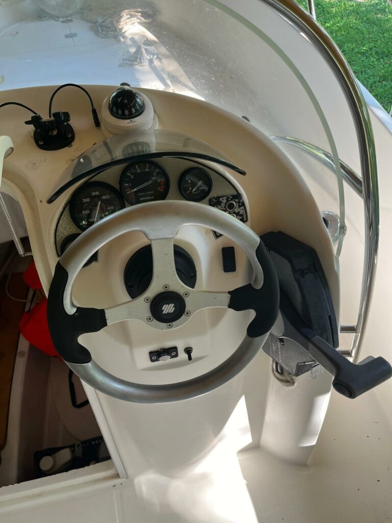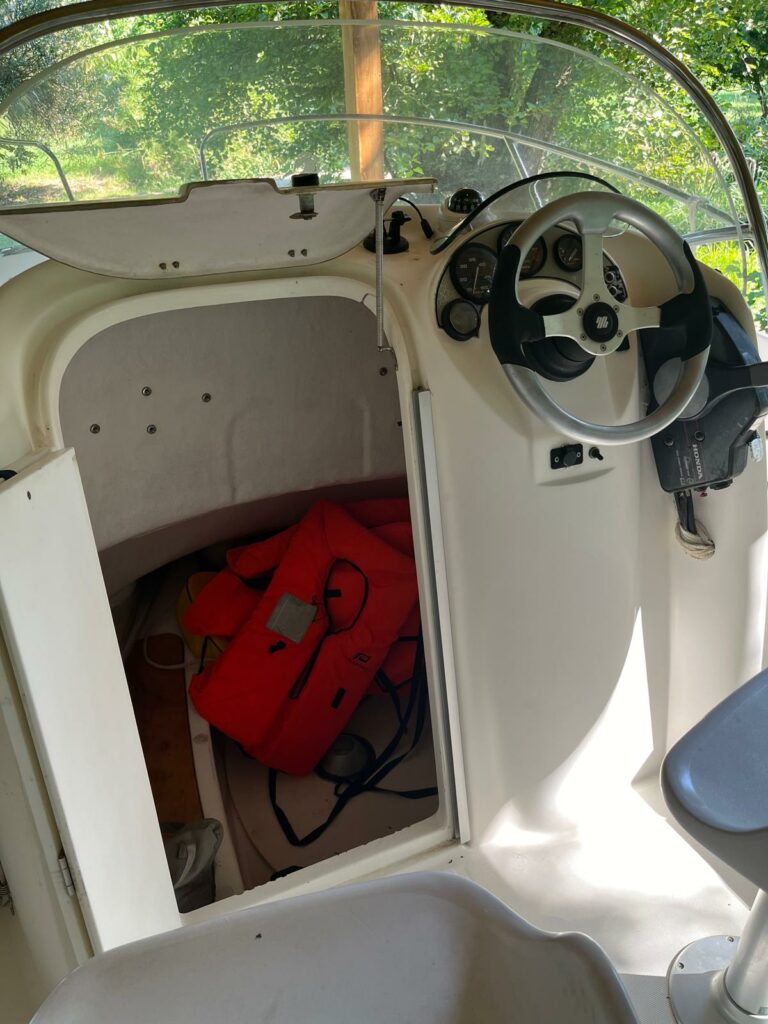 Équipement complet : 6 gilets, coussins et bain de soleil (état neuf), sondeur, speedo, feux de navigation, boussole de tableau de bord.