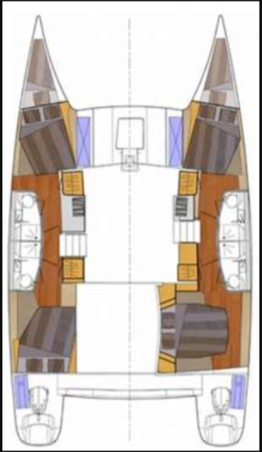équipé de 4 cabines avec lits doubles (dont une grande cabine propriétaire) 4 salles de bain (2 avec toilettes électriques) capacité 8/10 personnes