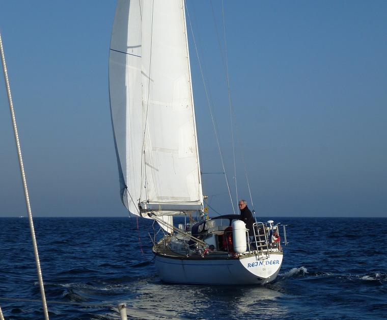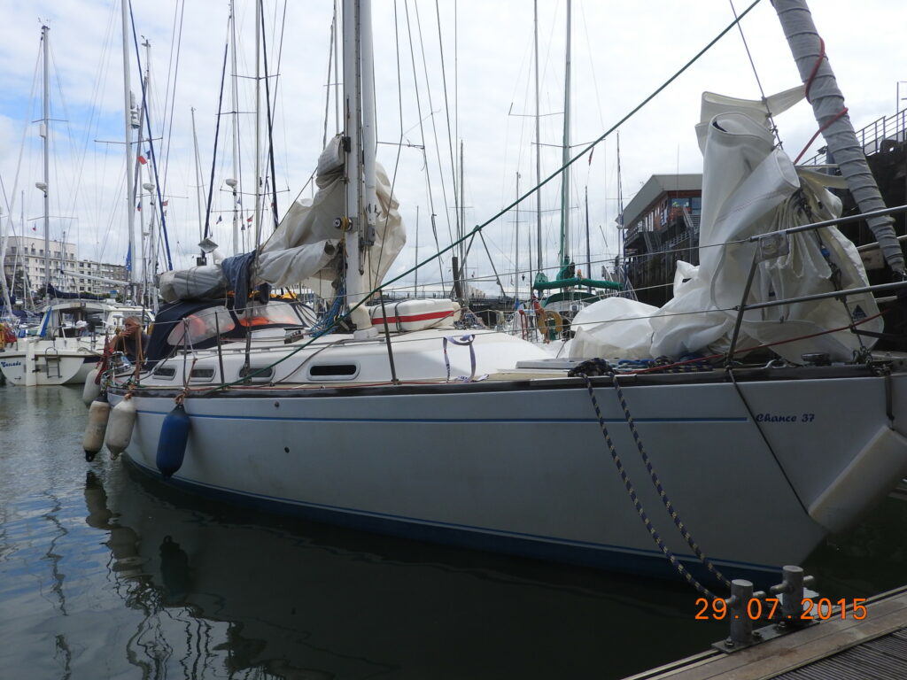 Voiles : GV 3 bandes de ris. Génois triradial sur enrouleur. sur étais larguable : solent, foc 2, tourmentin.