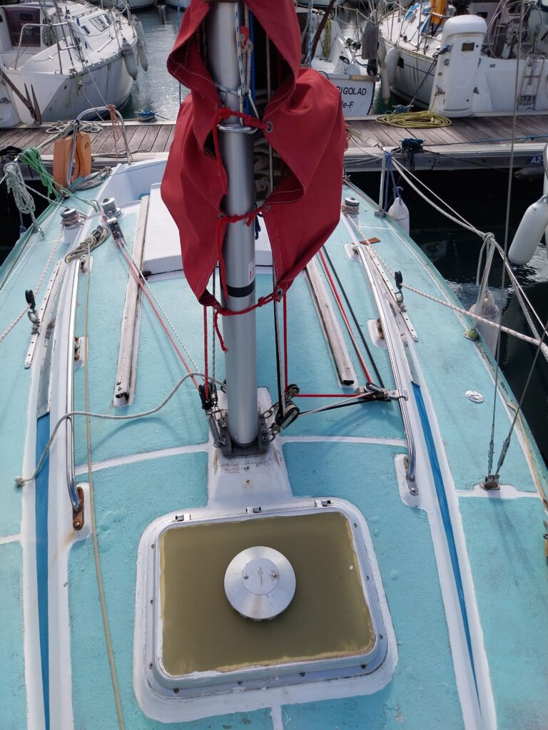 Ce bateau est proposé avec un mât articulé entièrement neuf, une grand-voile et un génois neufs, parfaits pour naviguer dans les meilleures conditions. Il est également équipé d’un spi pour petit temps, idéal pour optimiser les performances par vent léger. La motorisation est assurée par un moteur Mercury 5 chevaux, fiable et économique.