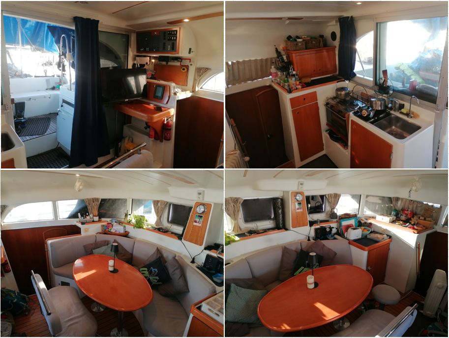 - Coin navigation + table à carte à bâbord, tableau 230 V en dessous