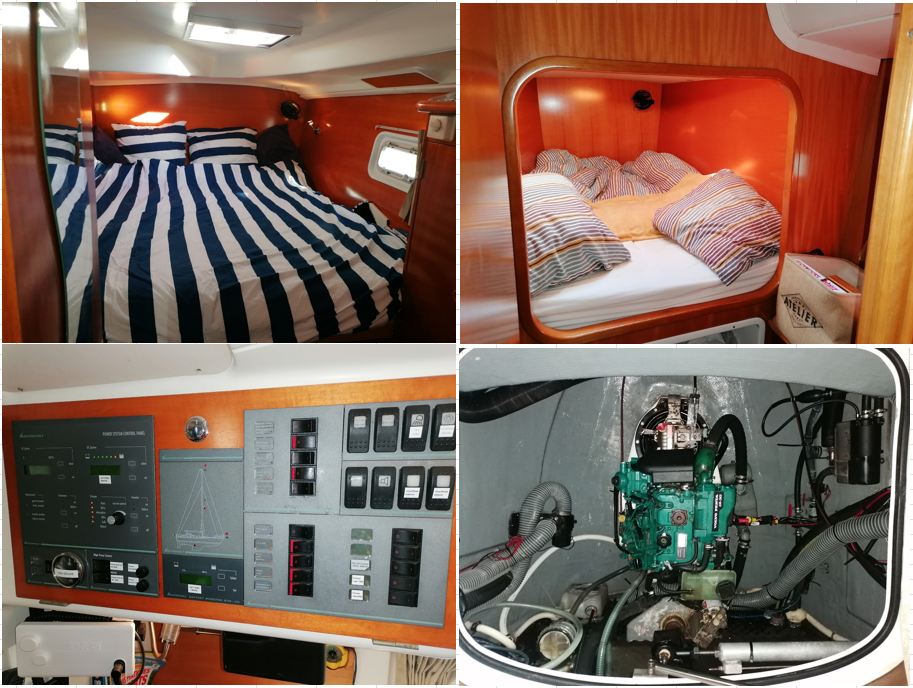 et bien équipée pour la vie à bord. Les quatre cabines doubles offrent un hébergement confortable