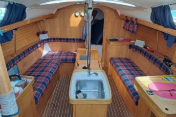 Feux Leds, Essuis glaces, Flaps électriques, Propulseur d’étrave, Jauge carburant, Pompe de cale, Echelle de bains, GPS Traceur GARMIN 102Sv, Sonde GT56HD, Carte GARMIN Blue chart, VHF ICOM IC M330 avec antenne.
